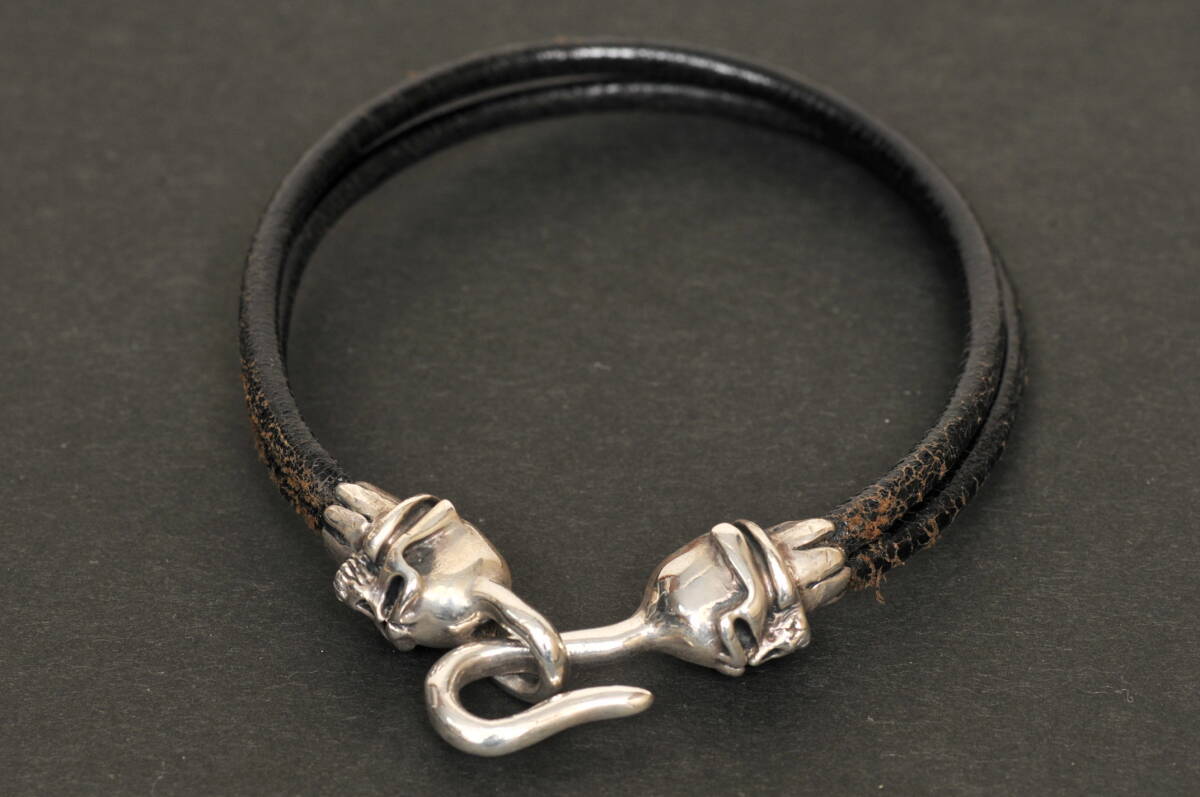 ブレスレット【THIRTEEN DESIGNS】サーティーンデザインズ スカル シルバー レザー/中古品
